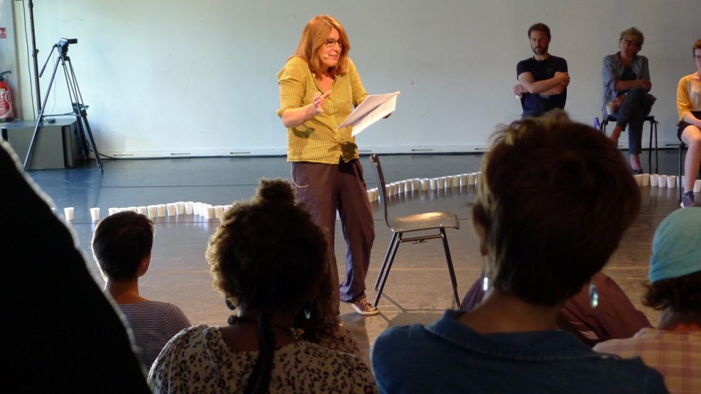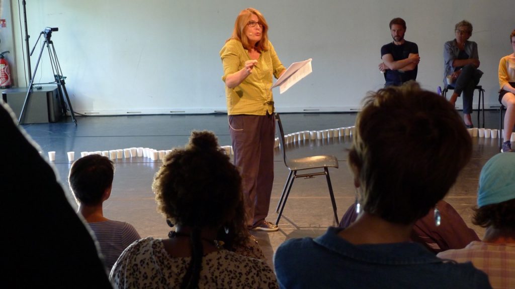 Ses mises en scène des textes de Tchekhov, Gatti, Shakespeare, Kourouma, Racine, Genet, dont en 2013 La Dernière interview de Jean Genet avec l’acteur-performeur et auteur Dieudonné Niangouna, et aujourd’hui Kleist, sont chacune une invitation au public à se déplacer avec elle.