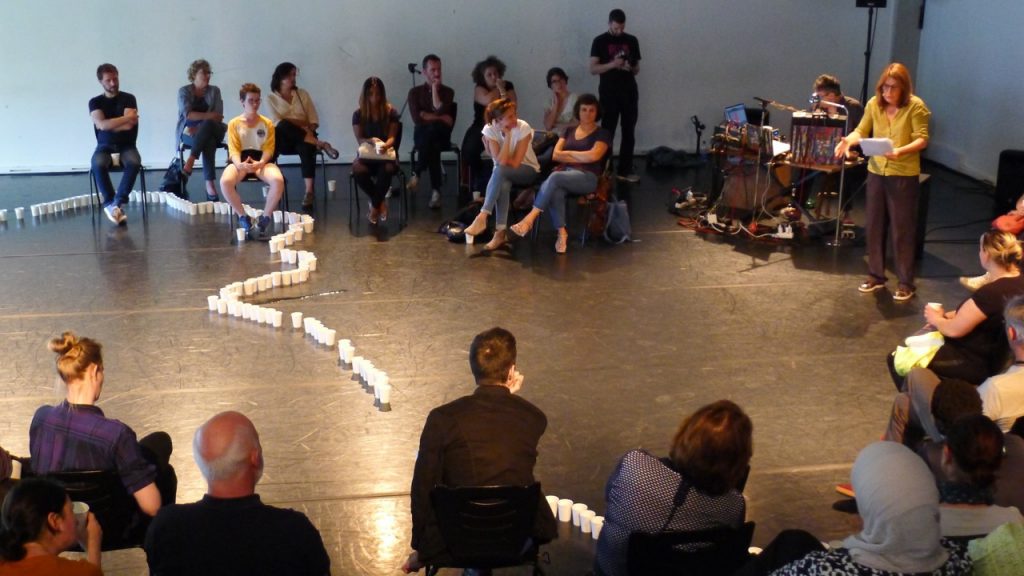 Catherine Boskowitz partage ses outils : caméra, argile, encres, papiers… Ainsi, par la fabrication d’écritures plurielles et en collaboration avec le musicien Jean-Marc Foussat, chaque protagoniste s’empare du plateau et invite le spectateur « à penser avec elle » ce que signifie l’engagement aujourd’hui.