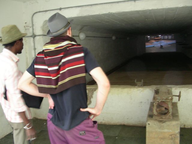 This work reflects on the various and complex historic interrelations and contemporary analogies that exists between Apartheid South Africa and the State of Israel. It is based on various sources, chiefly two well-written texts titled « Worlds apart » and “Brothers in arms – Israel’s secret pact with Pretoria” by Chris McGreal, published in The Guardian in 2006, echoed by Idith Zertal’s “Lords of the Land” (2007). It is staged in the abandoned Great Synagogue of Wolmarans Street in Johannesburg, built in the late 19th century along the designs of the Haggia Sofia Church, an icon of Byzantium. I am reminded of the passages in Edward Said’s book Freud and the Non-European where he suggests that Jews and Palestinians might find commonality in their shared history of exile and dispossession, and that diaspora could become the basis of a common polity in the Middle East. Diaspora, homeland and bantustan, occupied territories, abandonment, stateless, refugees, exiles, expatriates and immigrants… Considering what seem at the crossing of terminology and topology, where lies and viewpoints often serves as self-deluding wordplays, the intervention is intended as a proof by contradiction, an apagogical argument taking the form of a list of synonyms of synonyms spanning from the word “dispossession”. Using white chalk, I wrote that Reductio ad absurdum on the dark wooden floor of the deserted Synagogue, as a prayer to an abandoned authority, or a call to forsaken good-sense and forlorn sound judgment. If a house of religion is a place where one faces one’s truth, an abandoned house of religion is perhaps a place where one faces one’s abandoned truth.