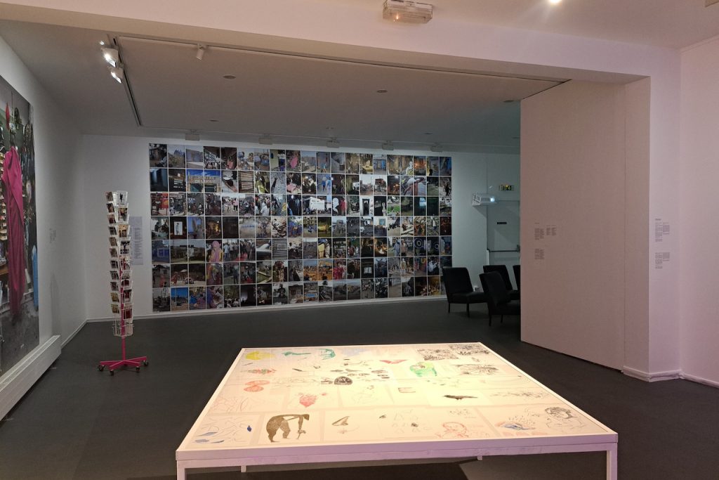 Opposite, the collective wall fills with documents that bear witness to each person's research and questions.