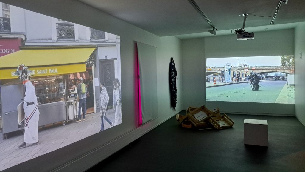 « J’ai habité le Marais et la Cité en tant que femme venant du Sud global, chaque jour je créais des spatialités nouvelles à partir d’éléments, d’objets dans la ville, des présences, du fleuve aussi… C’était à la fois conscient et inconscient, dans un lieu, dans un autre, au gré des déplacements et des humeurs. Ma ville, São Paulo, flotte dans Paris, elle est là, c’est ma spatialité dans le Marais. »