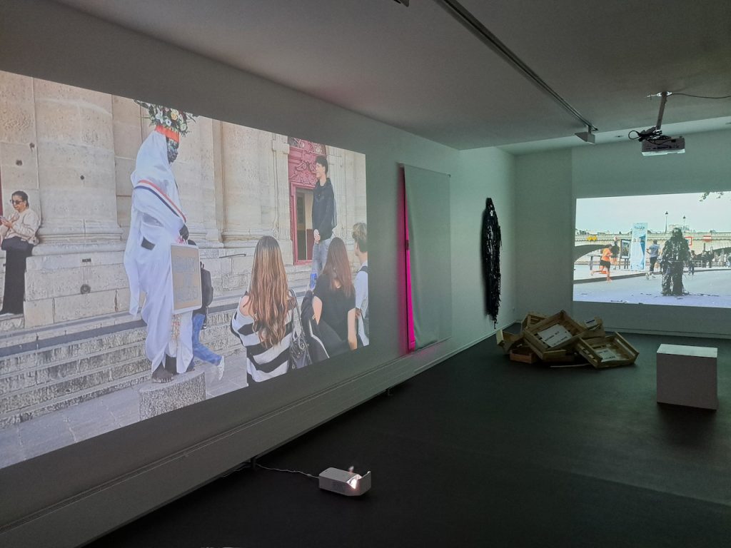 Among these interactions are stories of collaboration and relationships. Saad Eltinay lives with his dog Ocean, which he brought with him from Khartoum. In his video, the dog's gaze informs the artist's gaze. Sello Pesa attempts to connect with the river water to bring out the meaning of his presence in Paris. Oliver Musovik's Bureau of Botanical Compliance (BoBC) is a fictional authority responsible for using plant life to identify spaces of freedom in the urban environment.”
