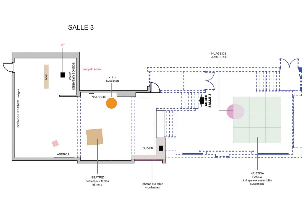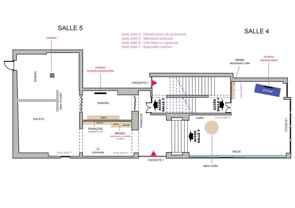 Cette salle présente une archive vivante de performances où les artistes engagent leur corps comme mémoire sensible, les sous-communs (Stefano Harney et Fred Moten) de la ville et de leur passage. Ils et elles regardent la ville de Paris, en y marchant, en y dansant, en y laissant leurs traces. Ils et elles réinventent l’espace, imaginent ses potentialités. »