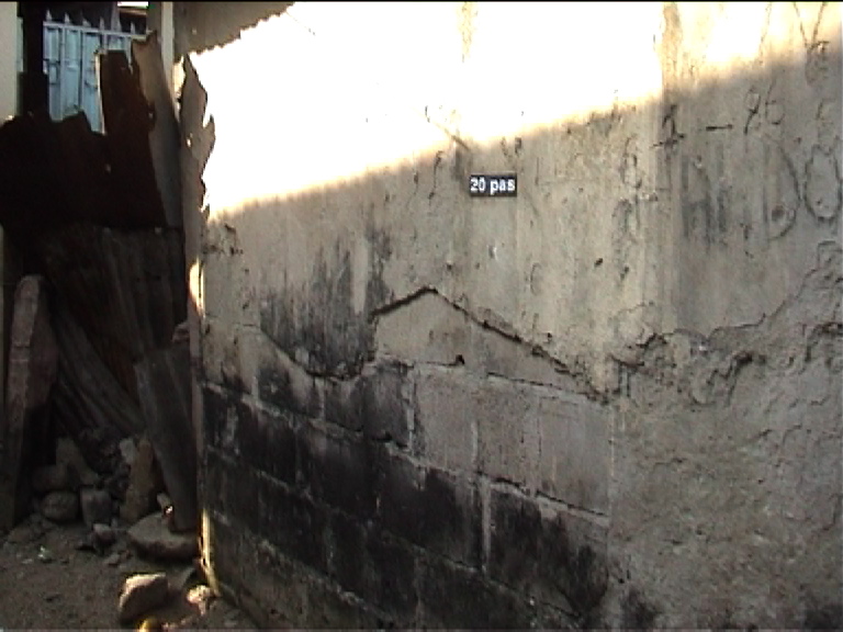 Hélène Rigny a participé en tant qu’étudiante de l’atelier de scénographie de l’Ecole des Arts Décoratifs de Strasbourg aux ateliers préparatoires des Scénographies Urbaines. Sont projet était de faire un relevé systématique de repères urbains de Strasbourg dans le but de trouver dans les rues de Douala une transposition spatiale de ces éléments. Ce sont Mélinée Faubert et Anne Chabert qui ont réalisé sur place à Douala l’installation des images dans une ruelle du quartier New Bell