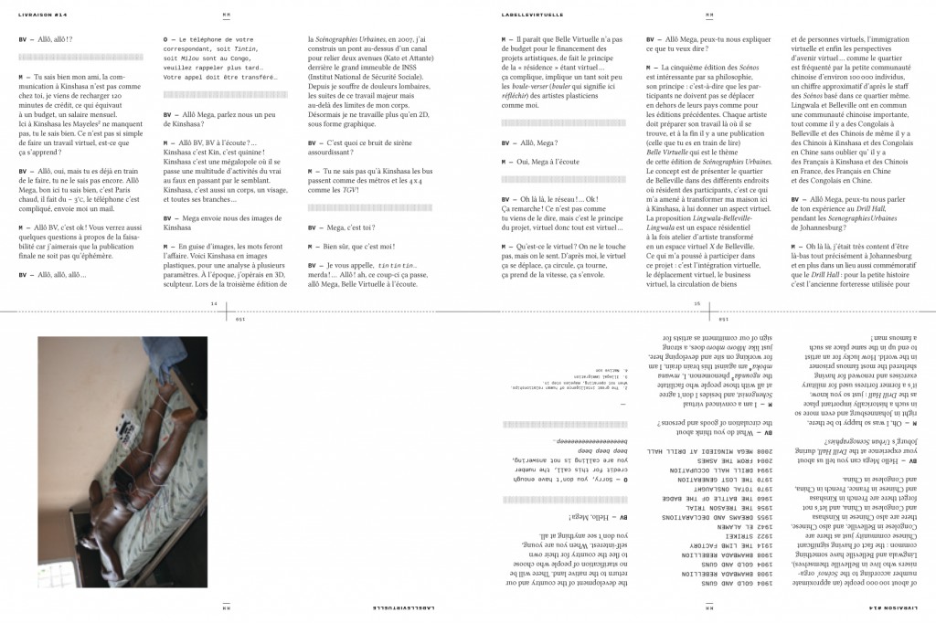 Face à Kinshasa, Paris se dévoile autrement : non pas sous forme de plan, mais à travers des lieux symboliques ainsi que des fragments de vie précaire. Par exemple, Mega Mingiedi dessine en fond toute la ligne du RER B puisqu’elle donne accès à l’aéroport Paris-Charles de Gaulle et, par conséquent, au monde entier. Si la Ville Lumière incarne pour certains une promesse, elle apparaît ici cloisonnée, administrative, faite de barrières visibles et invisibles.