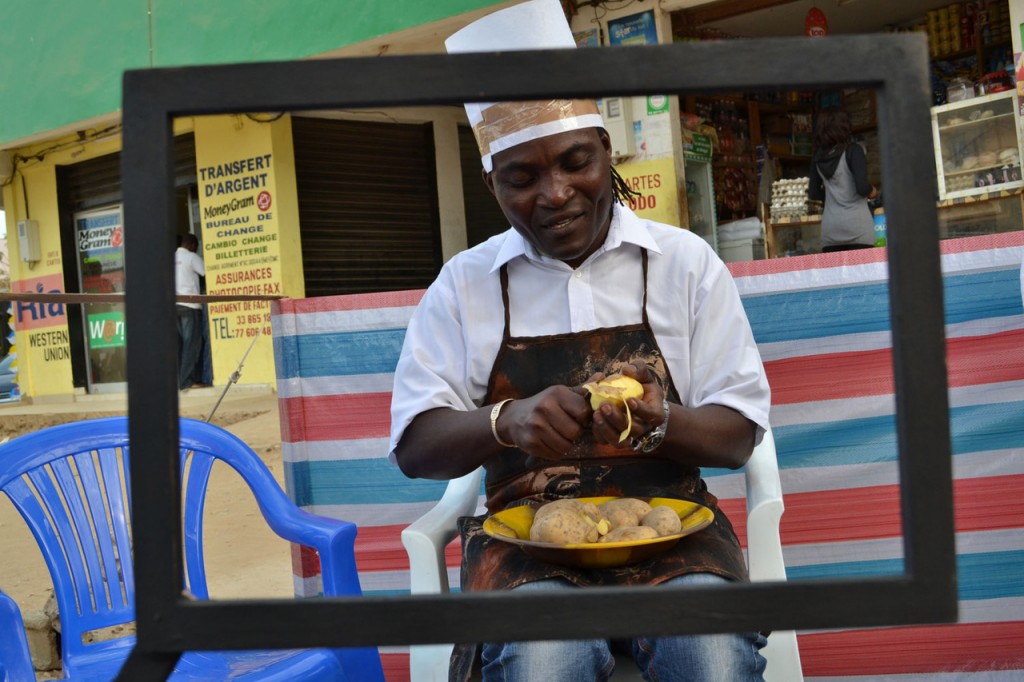 Qui veut dire en lingala, langue nationale congolaise, Les petits restaurants aux coins de rue à Kinshasa et leurs produits: resto de 8 à 12 places, avec en cuisine Mega Mingiedi, Androa Mindre Kolo, Papy Ebotani, Patrick Gufflet, …
