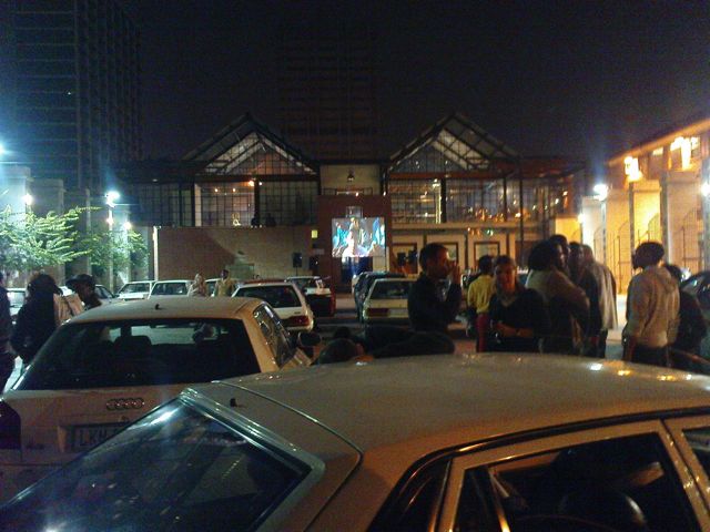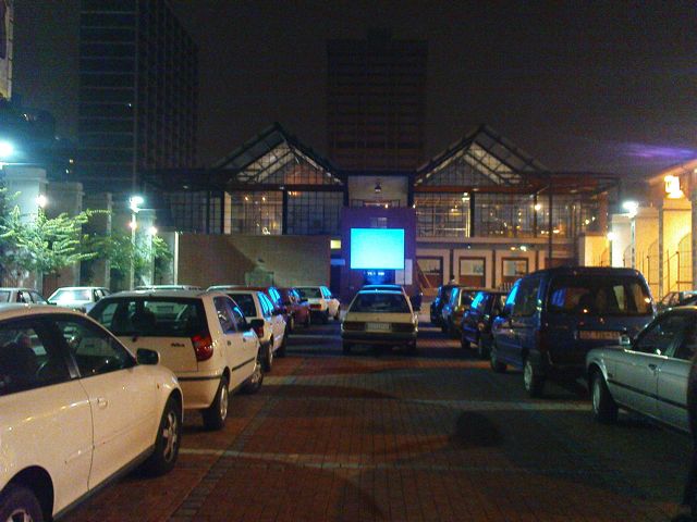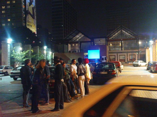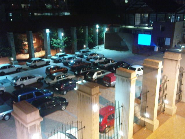 For the screening Mosquito all cars of visitors were arranged so as to face the screen on the square, resembling a drive-in. Mosquito controlled the show via microphone, directing the audience where to sit… Subsequently the films were screened publicly, late at night and early in the morning, with the intention to disturb and disrupt the public.