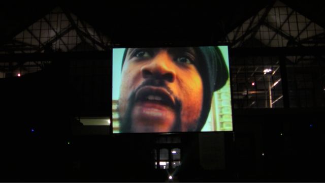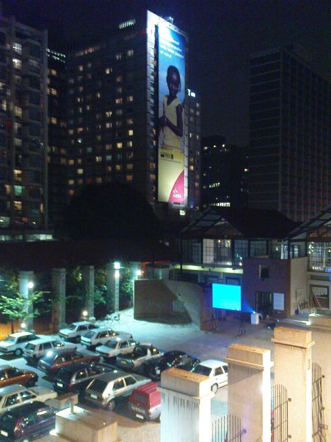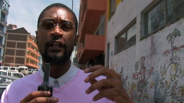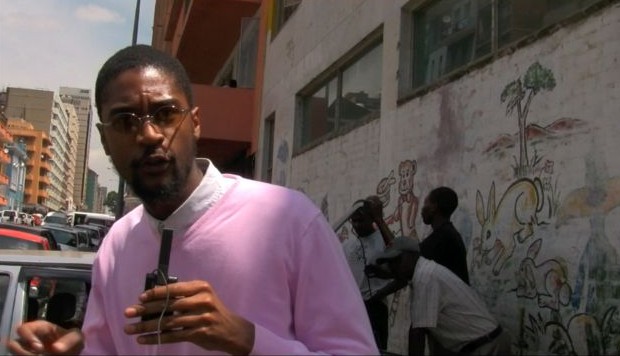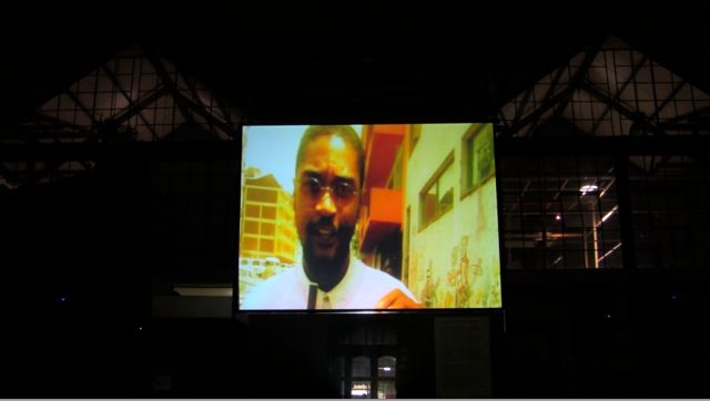Nástio Mosquito produced two video pieces which were projected onto buildings around the neighbourhood during the course of the four evenings of the festival. “You Scare Me”, a 20min monologue that traverses different issues and places Mosquito targeted during his stay, and “Joubert Park Urban Paradise”, which is an ironic take on the living conditions of inner city Johannesburg, were screened on the Drill hall square at the opening night.