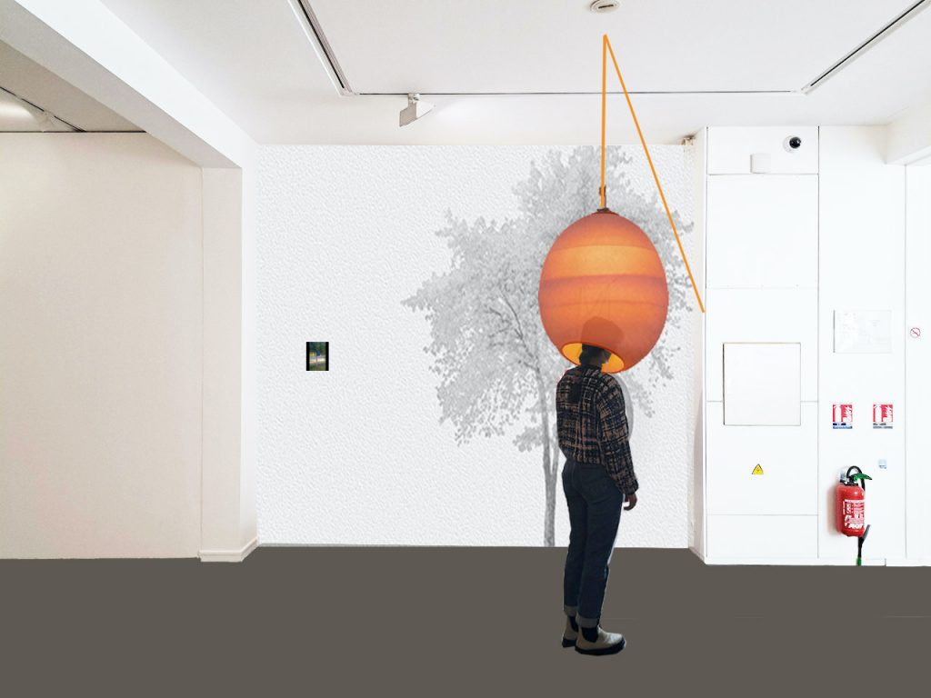 L’artiste a conçu un objet-sculpture suspendu, entre baluchon et nid, accroché aux arbres faisant face au bâtiment de la Cité internationale des arts. Grâce à un système de poulie, cet objet peut être abaissé à hauteur humaine, invitant chacun à y glisser sa tête, à la poser sur un coussin et à écouter une pièce sonore imaginée par Youmna Saba.