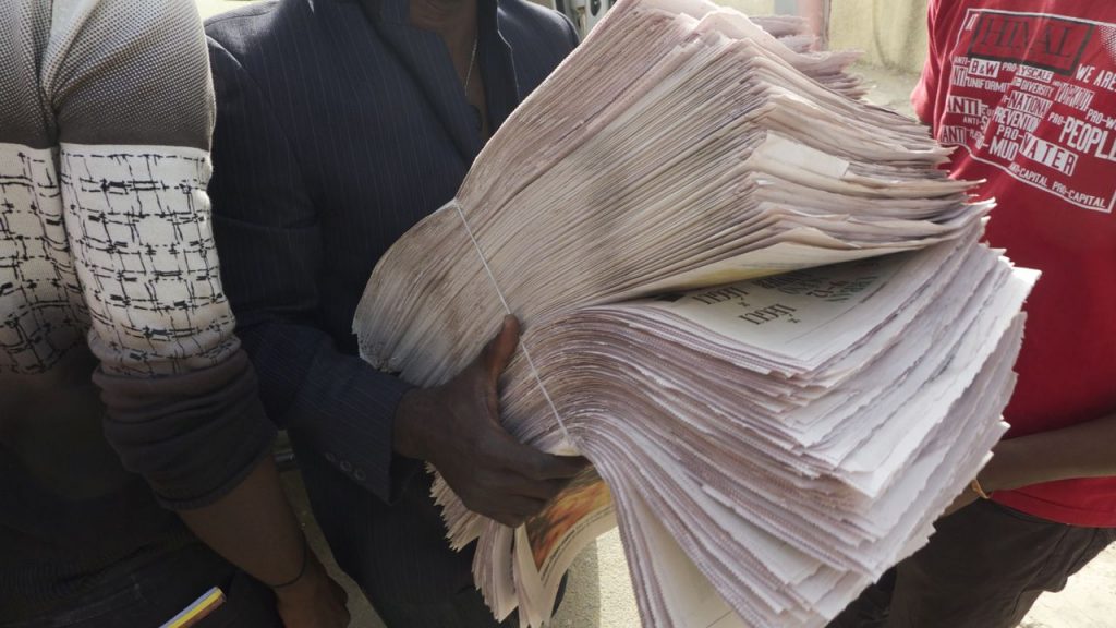 pour les Scénos de Dakar Nina Støttrup Larsen et Femke Herregraven ont invité à imaginer la forme de communication de la résidence et du festival. Elles ont produit un journal d’annonces associant les enjeux locaux (habitants, commerces, associations…) à ceux des Scénos (programme du festival).